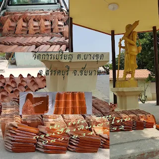 กระเบื้องดินเผาไทย th-tile.com ส่ง กระเบื้องดินเผามุงหลังคา แบบ กระเบื้องลอน (กาบกล้วย) หน้างาน วัดการเปรียญ ต.บางขุด อ.สรรคบุรี จ.ชัยนาท